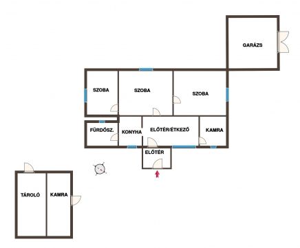 A 70 m²-es, vegyes falazatú (vert fal és tégla) épület elosztása praktikus:
