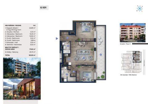 Az elhelyezkedés kiváló: a XIII. kerület dinamikusan fejlődő környezete biztosítja a mindennapi kényelmet, a jó infrastruktúrát és a könnyű megközelíthetőséget.